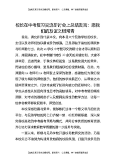 校长在中考复习交流研讨会上总结发言:愿我们的友谊之树常青.docx