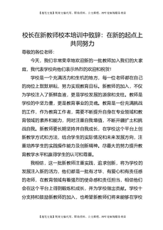 校长在新教师校本培训中致辞:在新的起点上共同努力.doc