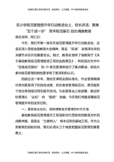 在小学规范管理提升年行动推进会上,校长讲话:聚焦 “五个进一步” 筑牢规范基石 创办满意教育.docx