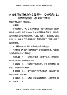 教育集团集团化办学实践报告,校长发言:以雁阵智慧筑就优质教育生态圈.docx