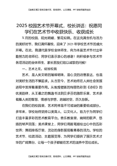 2025校园艺术节开幕式,校长讲话:祝愿同学们在艺术节中收获快乐、收获成长.docx