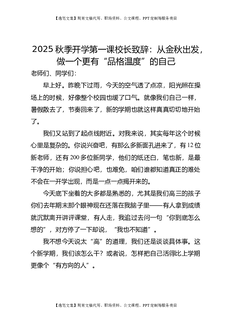 2025秋季开学第一课校长致辞:从金秋出发,做一个更有“品格温度”的自己.doc