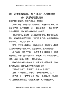 初一新生开学典礼,校长讲话:迈好中学第一步,携手启程新篇章!.doc