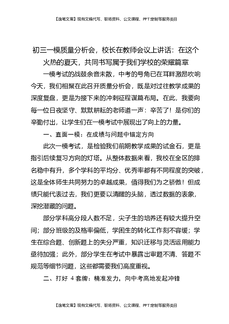 初三一模质量分析会,校长在教师会议上讲话:在这个火热的夏天,共同书写属于我们学校的荣耀篇章.docx