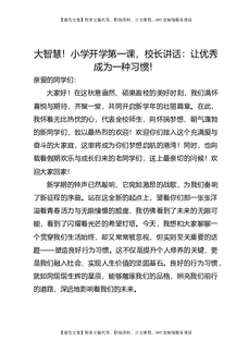 大智慧!小学开学第一课,校长讲话:让优秀成为一种习惯!.doc