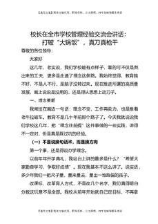 校长在全市学校管理经验交流会讲话:打破“大锅饭”,真刀真枪干.doc