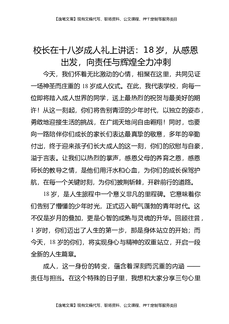 校长在十八岁成人礼上讲话:18岁,从感恩出发,向责任与辉煌全力冲刺.docx