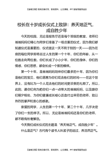 校长在十岁成长仪式上致辞:养天地正气,成自胜少年.docx