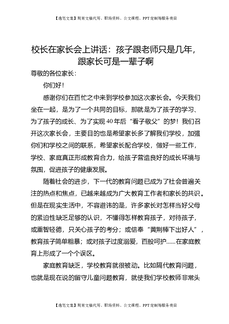 校长在家长会上讲话:孩子跟老师只是几年,跟家长可是一辈子啊.doc