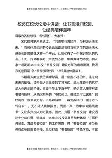 校长在校长论坛中讲话:让书香浸润校园,让经典陪伴童年.doc