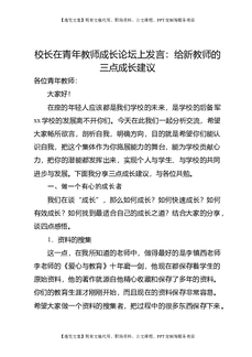 校长在青年教师成长论坛上发言:给新教师的三点成长建议.doc