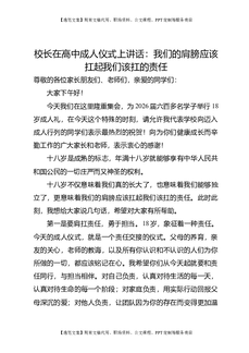 校长在高中成人仪式上讲话:我们的肩膀应该扛起我们该扛的责任.doc
