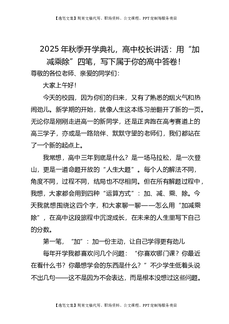 2025年秋季开学典礼,高中校长讲话:用“加减乘除”四笔,写下属于你的高中答卷!.doc