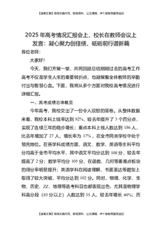 2025年高考情况汇报会上,校长在教师会议上发言:凝心聚力创佳绩,砥砺前行谱新篇.docx