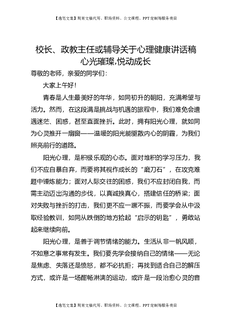 校长、政教主任或辅导关于心理健康讲话稿:心光璀璨,悦动成长.doc