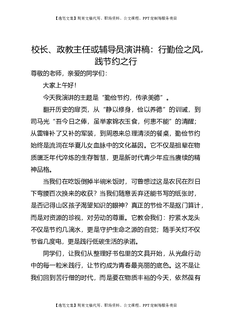 校长、政教主任或辅导员演讲稿:行勤俭之风,践节约之行.doc