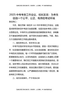 2025中考考务工作会议,校长发言:为考生创造一个公平、公正、有序的考试环境.docx