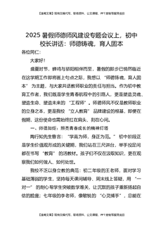 2025暑假师德师风建设专题会议上,初中校长讲话:师德铸魂,育人固本.docx