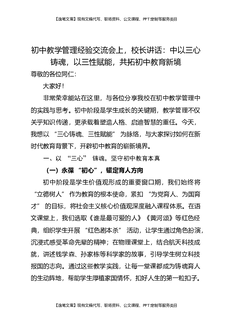 初中教学管理经验交流会上,校长讲话:中以三心铸魂,以三性赋能,共拓初中教育新境.docx