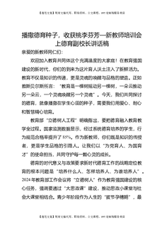 播撒德育种子,收获桃李芬芳—新教师培训会上德育副校长讲话稿.doc