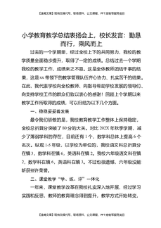 小学教育教学总结表扬会上,校长发言:勤恳而行,乘风而上.docx