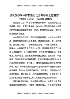 校长在冬季体育节暨运动会开幕式上你发言:生命在于运动,运动强健体魄.docx