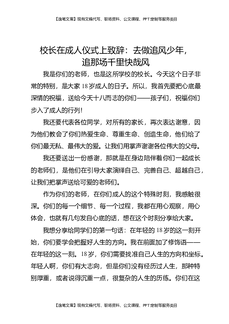 校长在成人仪式上致辞:去做追风少年,追那场千里快哉风.docx