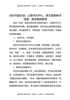 校长年度总结:以教学为中心,努力提高教学质量,推进素质教育.docx