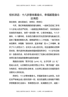校长讲话:十八岁意味着奋斗,幸福都是奋斗出来的.doc