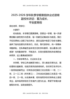 2025-2026学年秋季学期寒假休业式德育副校长讲话:蓄力成长,平安度寒假.doc