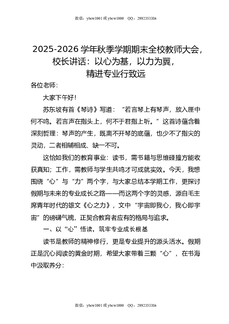 2025-2026学年秋季学期期末全校教师大会,校长讲话:以心为基,以力为翼,精进专业行致远.doc