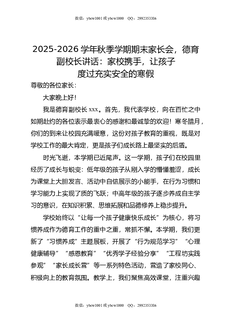 2025-2026学年秋季学期期末家长会,德育副校长讲话:家校携手,让孩子度过充实安全的寒假.doc