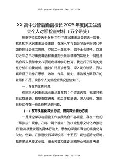 XX高中分管后勤副校长2025年度民主生活会个人对照检查材料(五个带头).doc