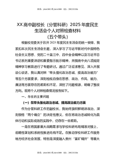 XX高中副校长(分管科研)2025年度民主生活会个人对照检查材料(五个带头).doc