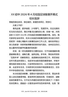 XX初中2026年4月校园足球联赛开幕式校长致辞.docx