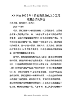 XX学校2026年4月教育信息化2.0工程推进会校长讲话.docx