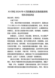XX学校2026年4月防震减灾应急疏散演练校长总结讲话.docx