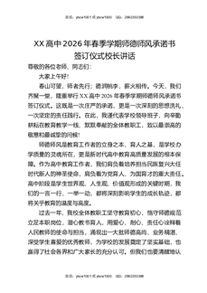 XX高中2026年春季学期师德师风承诺书签订仪式校长讲话.docx