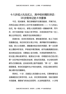 十八岁成人礼仪式上,高中校长精彩讲话:18岁需牢记的4件要事.docx