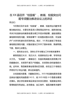 在XX县召开“校园餐”、教辅、校服突出问题专项整治推进会议上的讲话.doc