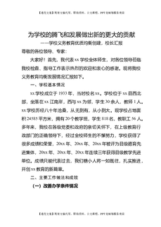 学校义务教育优质均衡创建,校长汇报:为学校的腾飞和发展做出新的更大的贡献.doc