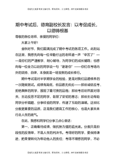 期中考试后,德育副校长发言:以考促成长,以德铸根基.doc