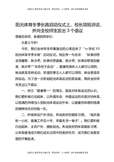 阳光体育冬季长跑启动仪式上,校长简短讲话,并向全校师生发出3个倡议.doc