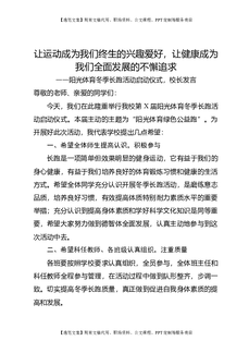 阳光体育冬季长跑活动启动仪式,校长发言:让运动成为我们终生的兴趣爱好,让健康成为我们全面发展的不懈追求.doc