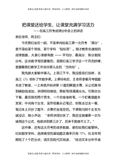 在高三月考成绩分析会上的讲话:把课堂还给学生,让课堂充满学习活力.doc
