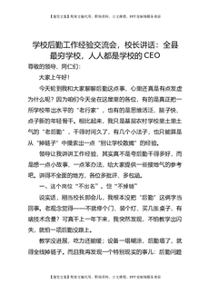 学校后勤工作经验交流会,校长讲话:全县最穷学校,人人都是学校的CEO.doc