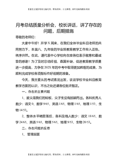 月考总结质量分析会,校长讲话,讲了存在的问题,后期措施.doc