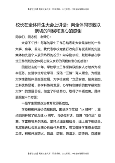 校长在全体师生大会上讲话:向全体同志致以亲切的问候和衷心的感谢.doc