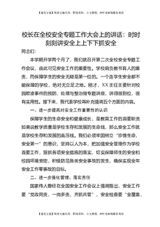 校长在全校安全专题工作大会上的讲话:时时刻刻讲安全上上下下抓安全.doc