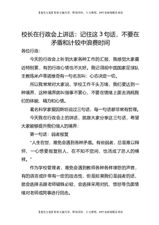 校长在行政会上讲话:记住这3句话,不要在矛盾和计较中浪费时间.doc